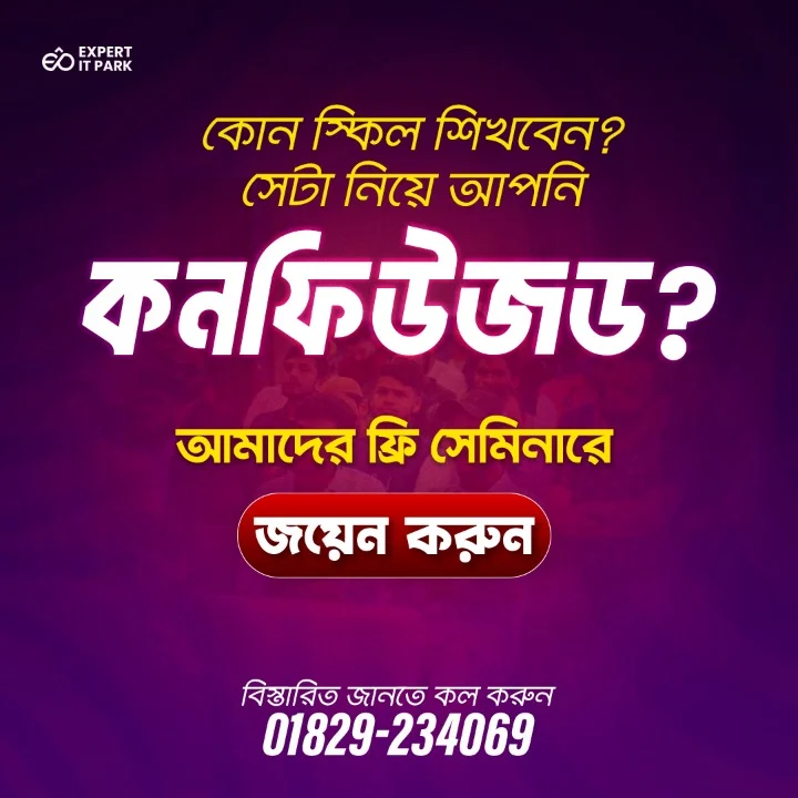 Expert IT Park ডিজিটাল মার্কেটিং, ইংরেজি যোগাযোগ ও ফ্রিল্যান্সিং কোর্সের জন্য একটি আধুনিক অনলাইন শিক্ষা প্রতিষ্ঠান। আমাদের অনলাইন ও অফলাইন কোর্সসমূহ লাইভ ক্লাস, ফ্লেক্সিবল টাইমিং এবং বিশেষজ্ঞ ইন্সট্রাক্টরের মাধ্যমে পরিচালিত হয়। সফলভাবে কোর্স শেষ করার পর সার্টিফিকেট প্রদান করা হয় ।
